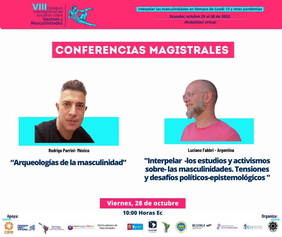 Extendemos la invitación para el viernes 28 de octubre a través del siguiente enlace de Zoom: https://cedia.zoom.us/j/82564432128 o a través de la página de Facebook oficial: https://www.facebook.com/coloquio.masculinidades